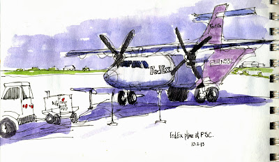 I LIKE your FedEx plane and you got to go to Yoke's after all. Man, drawing those bottles, all lined up so nicely - Time & Patience. I just really like how you are using color down the sides, it just makes the people all the more important, oddly enough.